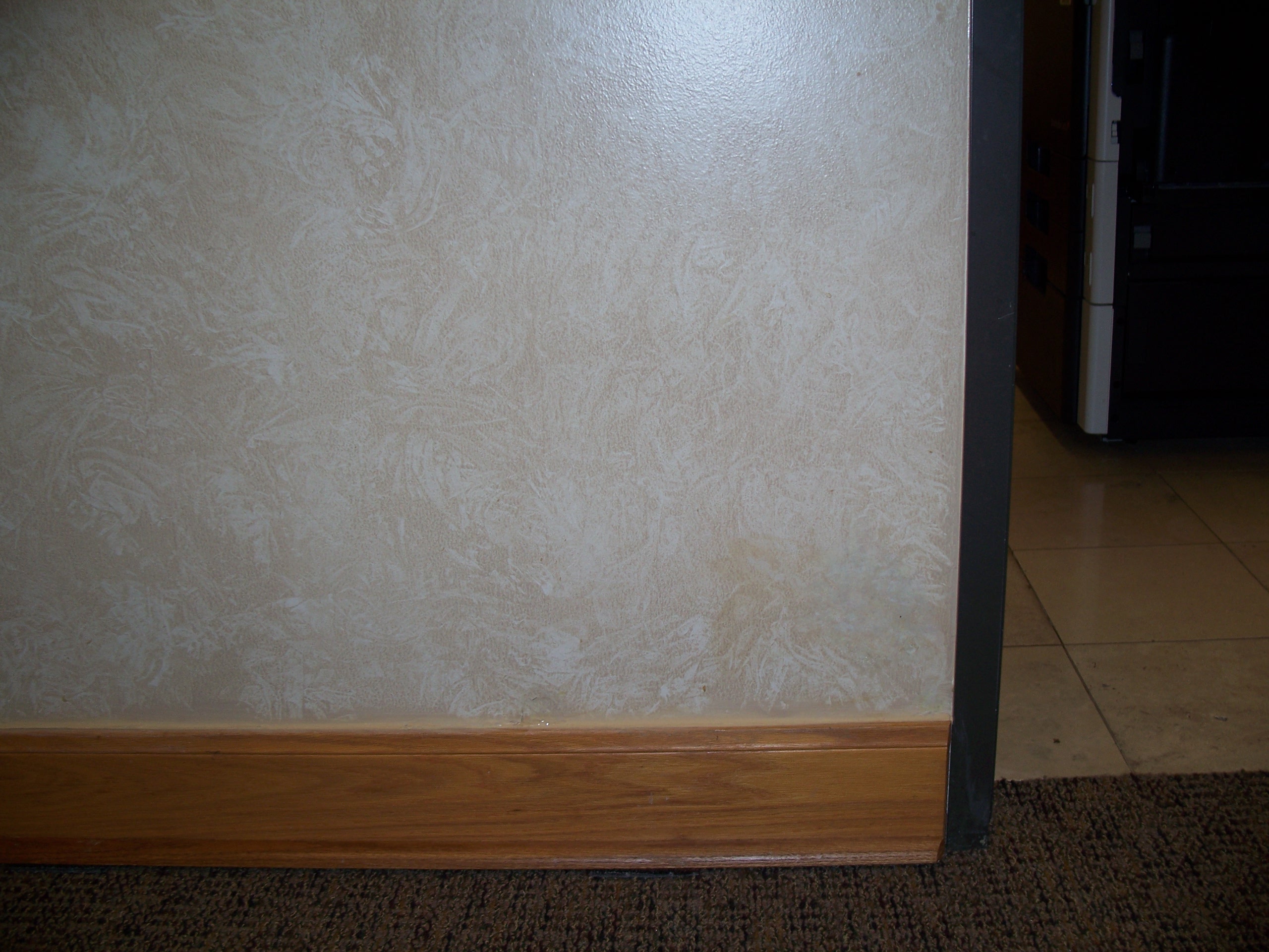 bottom right hand corner of the wall had been damaged by an appliance. This